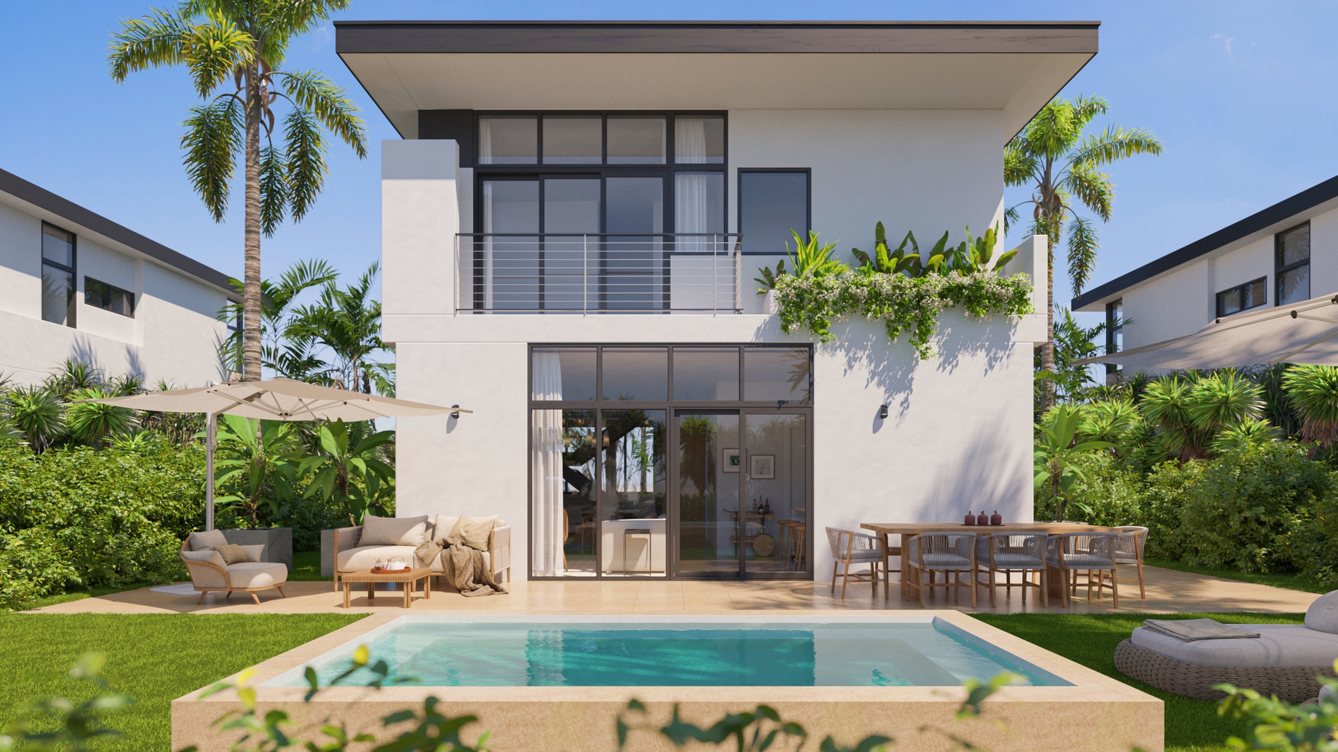 Moderne Apartments, freistehende Villen, Stadthäuser und Doppelhaushälften – alle nur wenige Minuten von Punta Canas Flughafen, Stränden, Einkaufszentren und Unterhaltungsangeboten entfernt.
