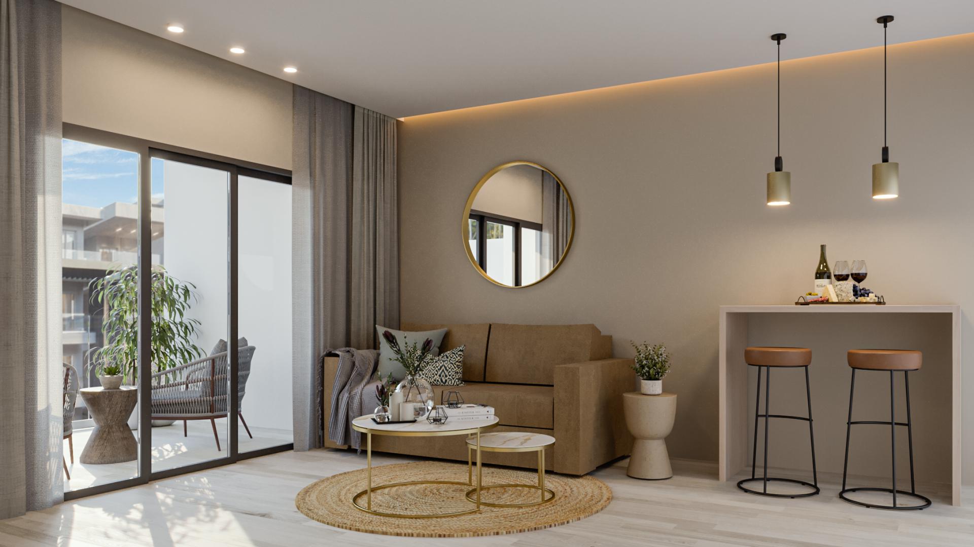 Treten Sie ein in eine Welt der Eleganz und des Komforts mit diesem geräumigen 73,62 m² großen Apartment, das sich im ersten Stock befindet und über einen Balkon verfügt, von dem aus Sie einen atemberaubenden Ausblick genießen können. In einem Wohnkomplex direkt am Strand gelegen, bietet diese Immobilie den ultimativen Lebensstil an der Küste, mit dem Strand nur wenige Schritte entfernt. Die Wohnung verfügt über ein wunderschön gestaltetes Schlafzimmer und ein modernes Badezimmer und ist damit ein Refugium, in dem Luxus und Funktionalität nahtlos ineinander übergehen.