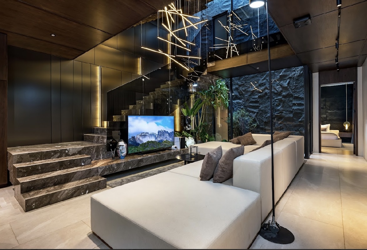 – Von der Kunst inspirierte Innenräume mit Skulpturen, Gemälden und Beleuchtung, entworfen von AV Technology.