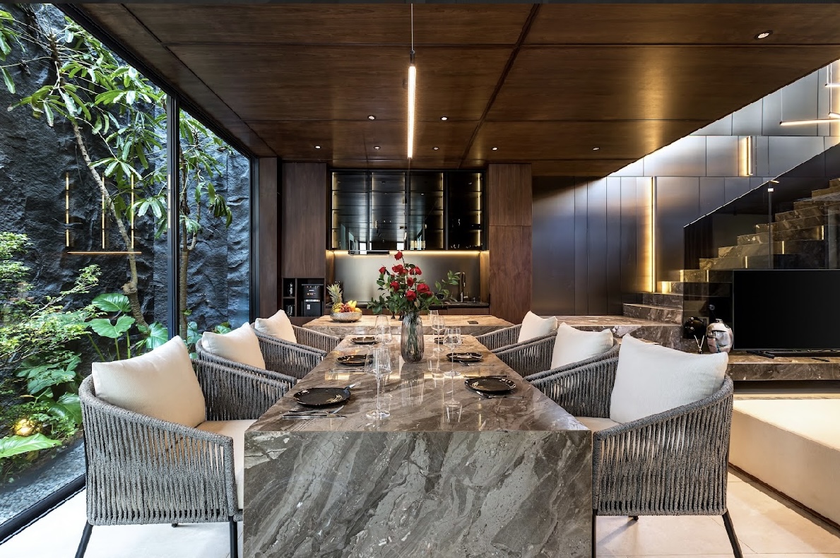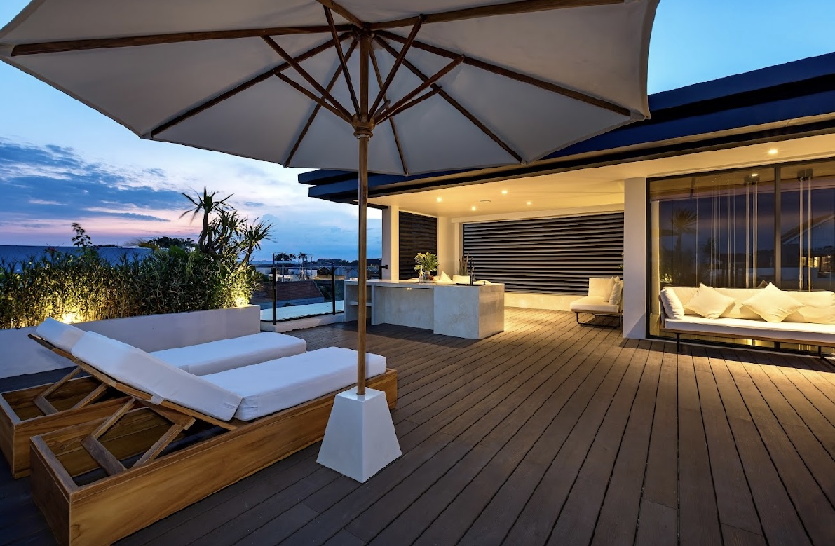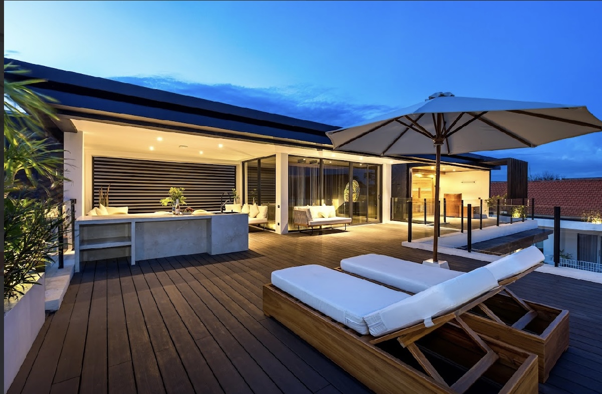 – Eine nahtlose Verschmelzung von Innen- und Außenbereichen – privater Pool, Dachterrasse und tropischer Garten.