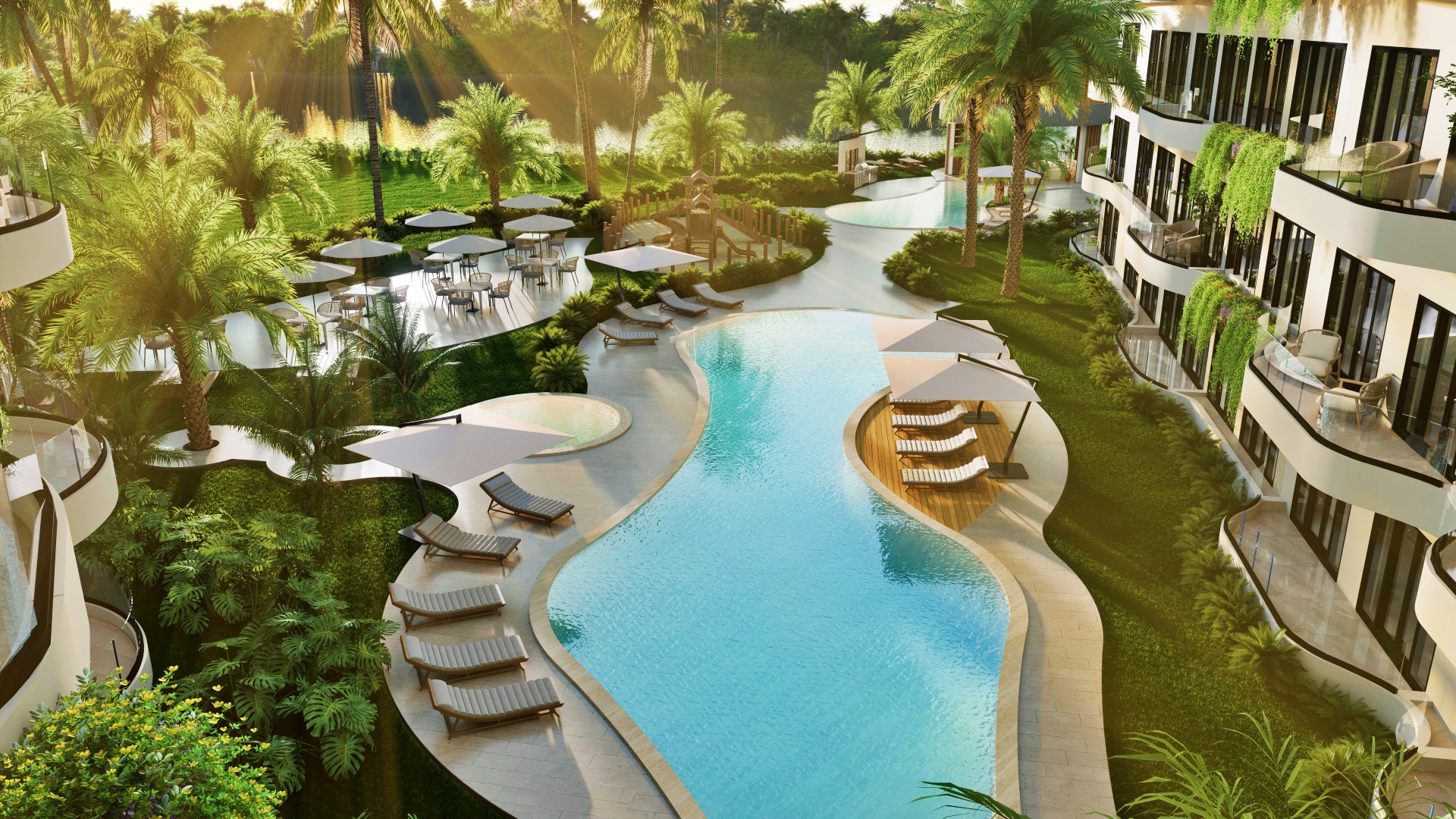 Relax and unwind in your personal paradise, complete with serene gardens and inviting swimming pools for both adults and children. The seamless indoor-outdoor living concept allows you to fully embrace the tropical climate, whether you’re enjoying a quiet evening on the terrace, hosting friends in the BBQ area, or soaking up the sun by the lake-view deck.