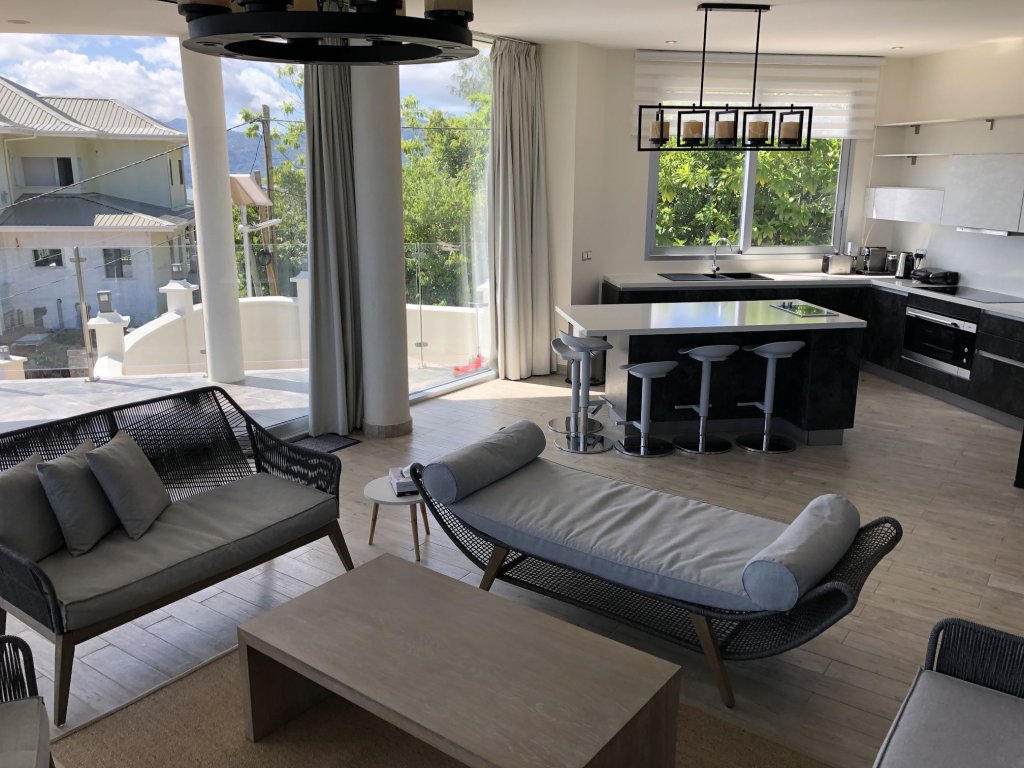 Secure remote-controlled blinds, bright interiors and open kitchen floor plan create an atmosphere of comfort and elegance 🚗 15 mins to Victoria ✈️ 25 mins to Seychelles International Airport 📏 Plot: 994 m² 🌊 Sea and mountain views