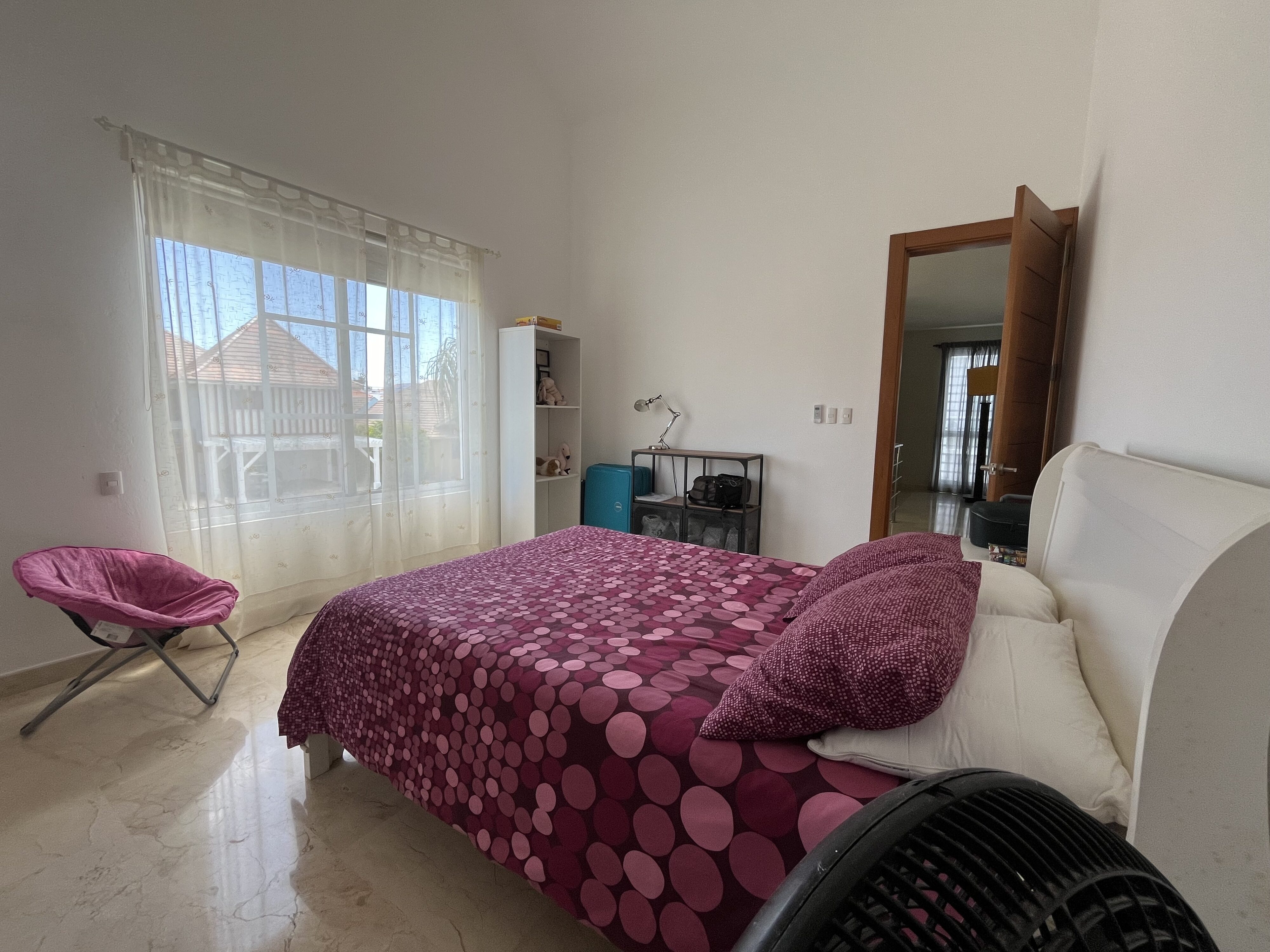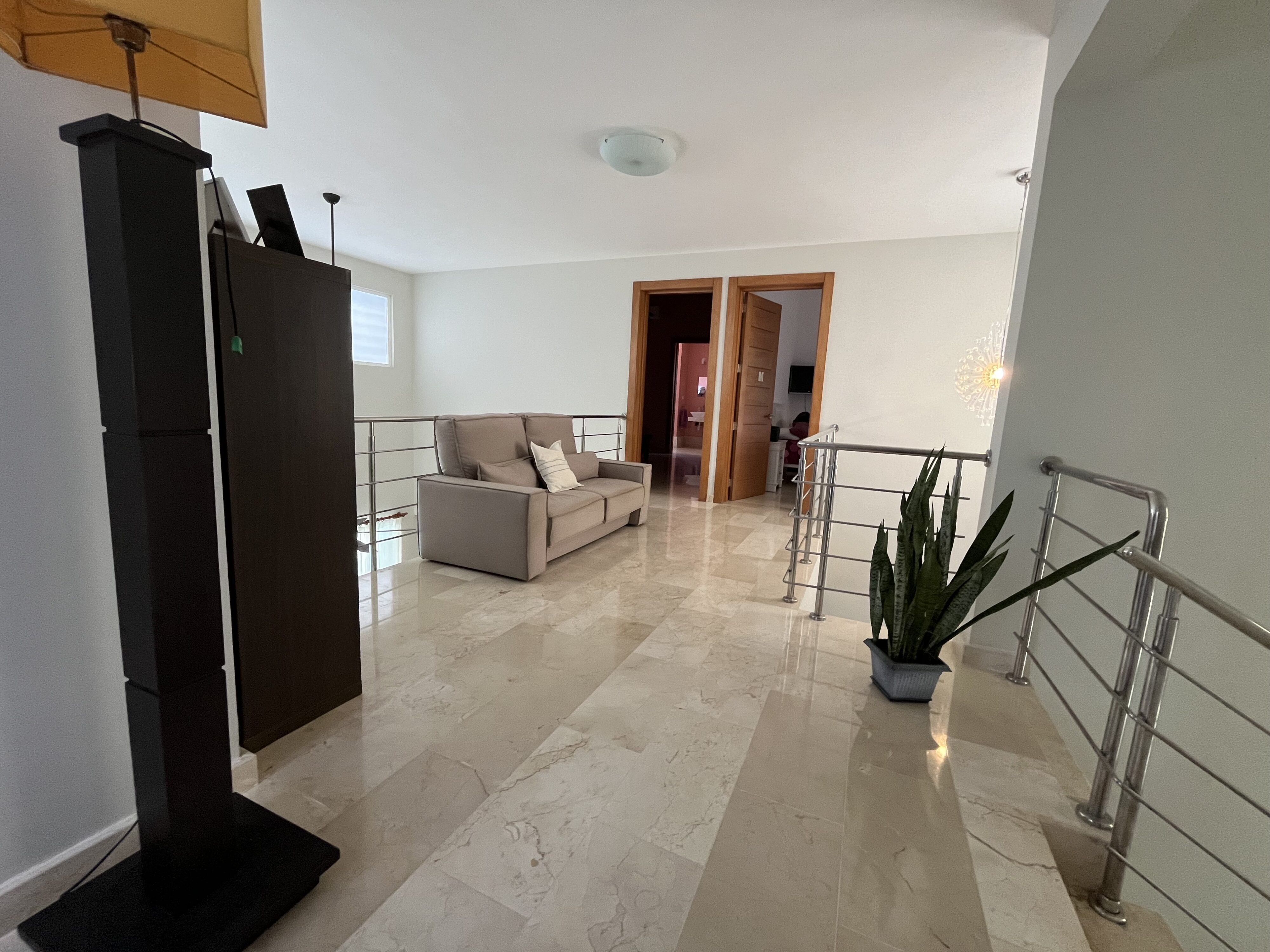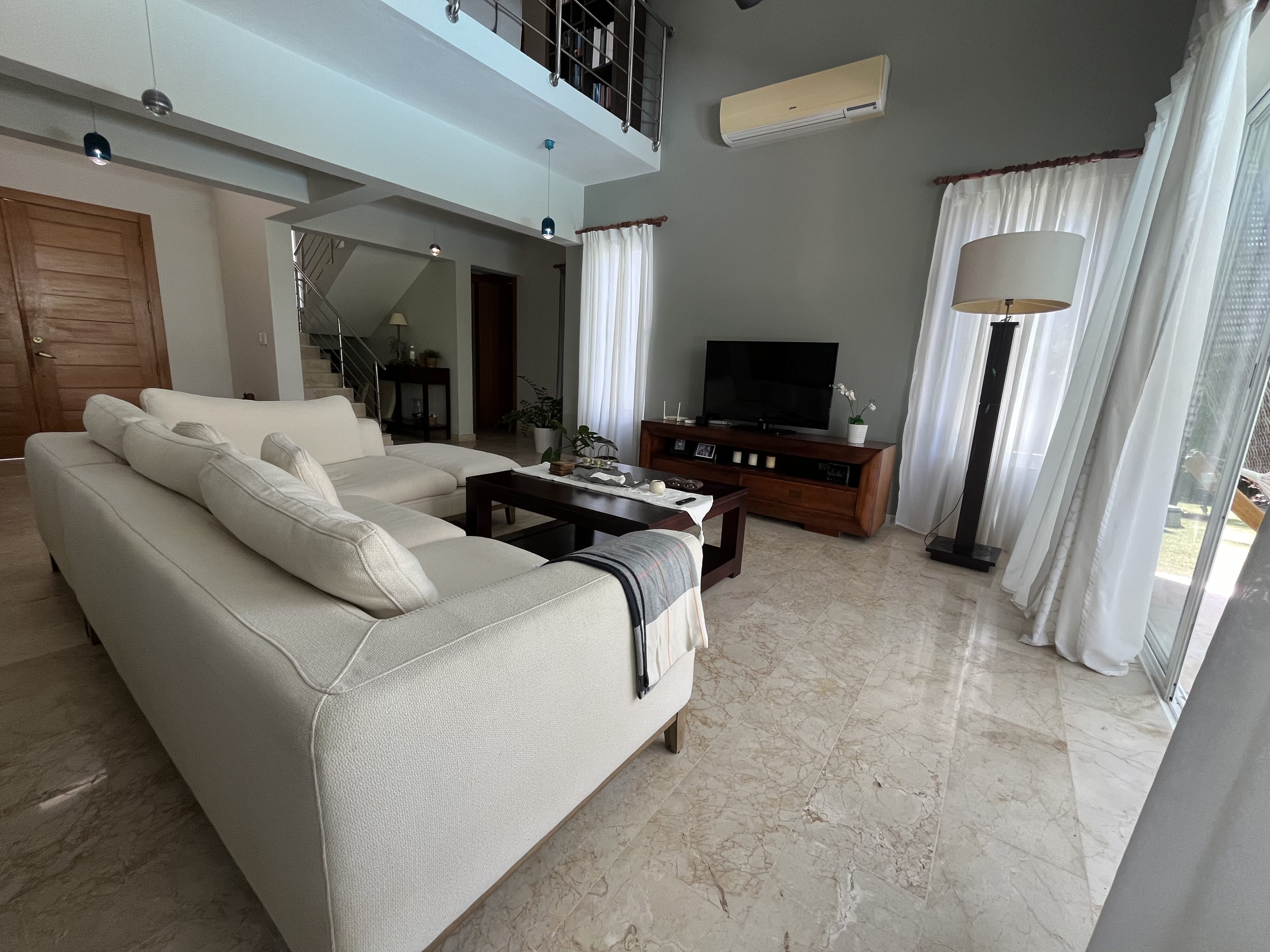Hermosa Villa, ubicada en la zona residencial de PUNTA CANA VILLAGE, amplia y cómoda, cuenta con 2 niveles. En el primer nivel tenemos, acogedora sala, con grandes ventanales, mucha iluminacion y ventilacion, con vista a la piscina, a la terraza y al jardín, comedor y amplia y funcional cocina con meseta y desayunador incluidos, area de lavado y habitación de servicio con baño, estudio o sala de tv con A/A y y cómoda habitación de visitas con baño completo. En el segundo nivel tenemos un área de estar o sala de tv y 3 amplias e iluminadas habitaciones, cada una con baño. La habitación principal cuenta con un espacioso walking closet, dicha habitación tiene vista a la piscina y el baño es amplio, cómodo y con muy buena iluminación, la segunda habitación con vista a la piscina y la tercera habitación con vista al frente de la villa.