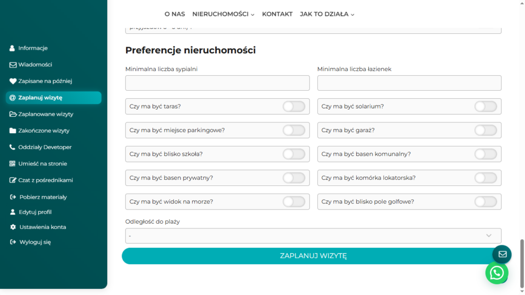 Gdy wszysto się zgadza , najwyższy czas by zaplanować wizytę klienta! Planowanie rozpoczyna się od wejścia do sekcji ZAPLANUJ WIZYTĘ i od wyboru nieruchomości z folderu klienta.